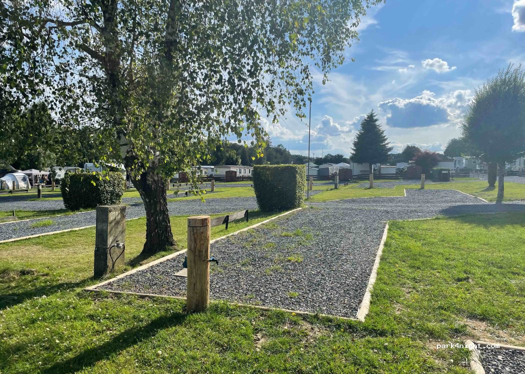 Très bon camping de passage ou pour rester quelques jours visiter la région. de nombreux résidents mais une 30e de places très bien installées pour les passages avec eau et électricité sur chacune. Emplacements graviers et belle étendue d'herbe sur chacun.