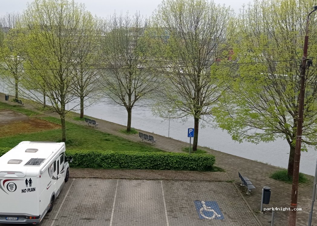 Bel endroit en bord de Meuse. mais nuits agitées. Situé juste au pied du pont de chemin de fer. si ce n'est le bruit des trains, le camion poubelle qui vous réveil à 3-4 heure du mat, des alarmes voitures, le bruit des péniches qui passent dès le lever du soleil... Attention le parking n'est accessible qu'aux CC de max 6.5 mètres de long. les emplacements étant prévu pour 8 voitures.