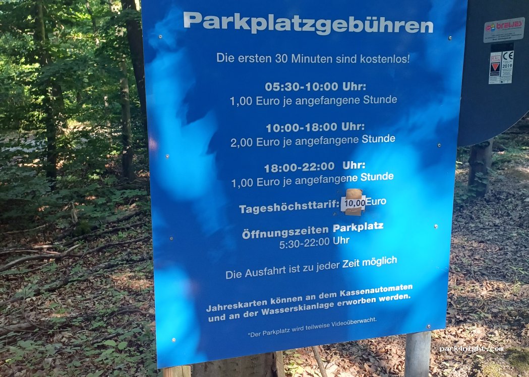 Parking au bord du lac, zone de baignade disponible à proximité du lac-Bad (500 mètres) il y a des douches et des toilettes et une friterie.