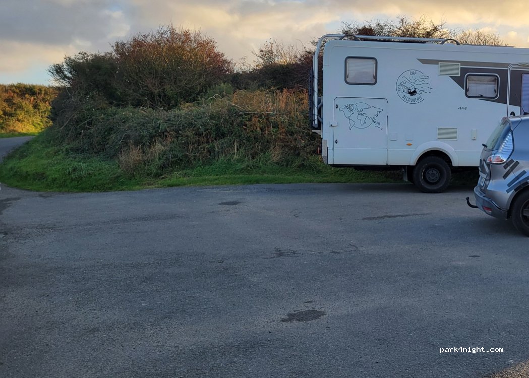 Lovely spot - watched a beautiful sunset. On arrival, 1 large campervan and two cars, we squeezed in until cars had gone then moved over so we could see the view. Could get 4 vans if parked well or 3 if not.