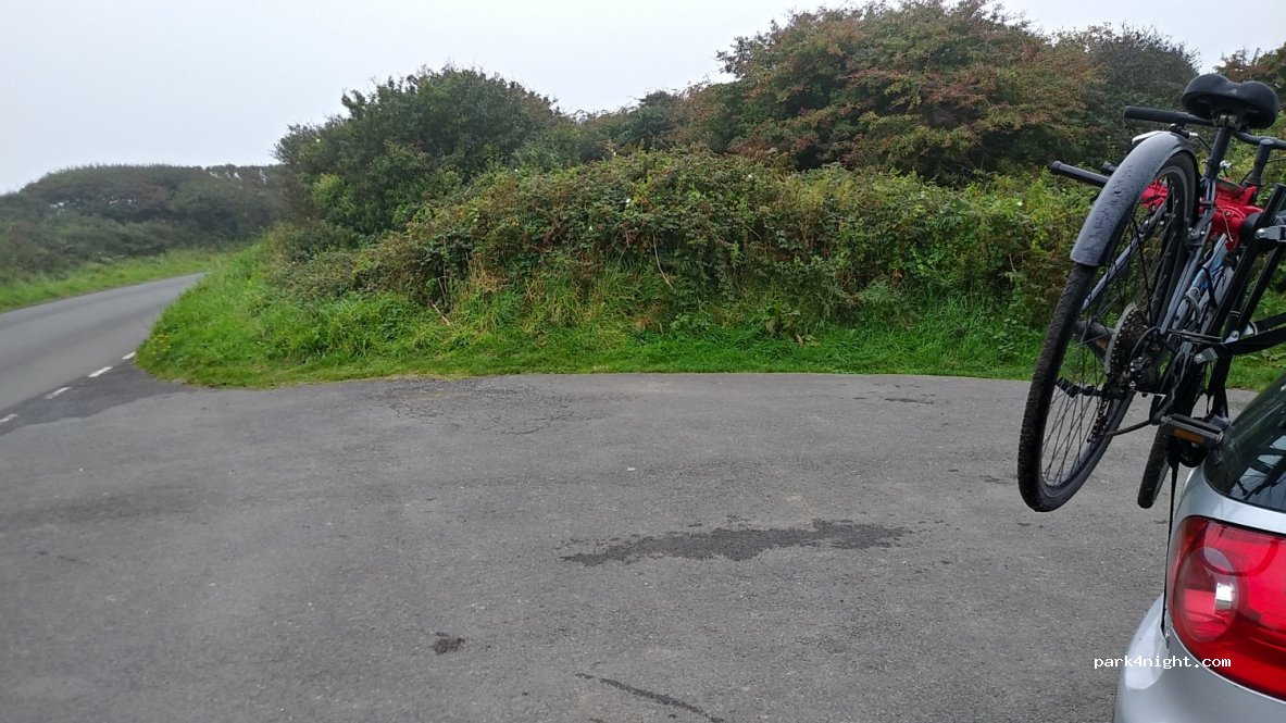 A small carpark with view of the bay. It's in a little bend from the main road but safe. There was another van when we arrived in the evening. Had a cuppa in front of the sunset. Leads to a coastal path to the village from there. Note: a friendly local, who recommended this place, did say it was the place of a famous unsolved murder of an Oxfordshire couple in the 1980s. We survived the night.