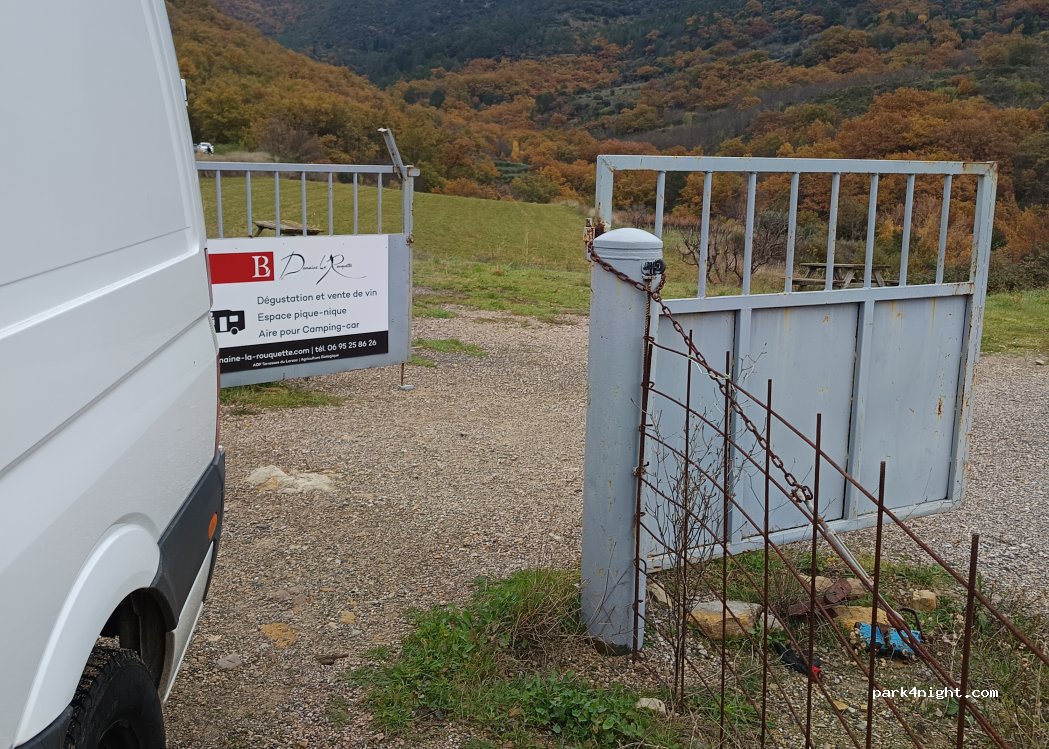 The Domaine La Rouquette offers you a Private area at the edge of the vineyards, no services available (electricity, water, emptying) You will appreciate the view and possibility of visiting the vineyards as well as the private cellar. Car park delimited by a chain with padlock which can be opened on request.