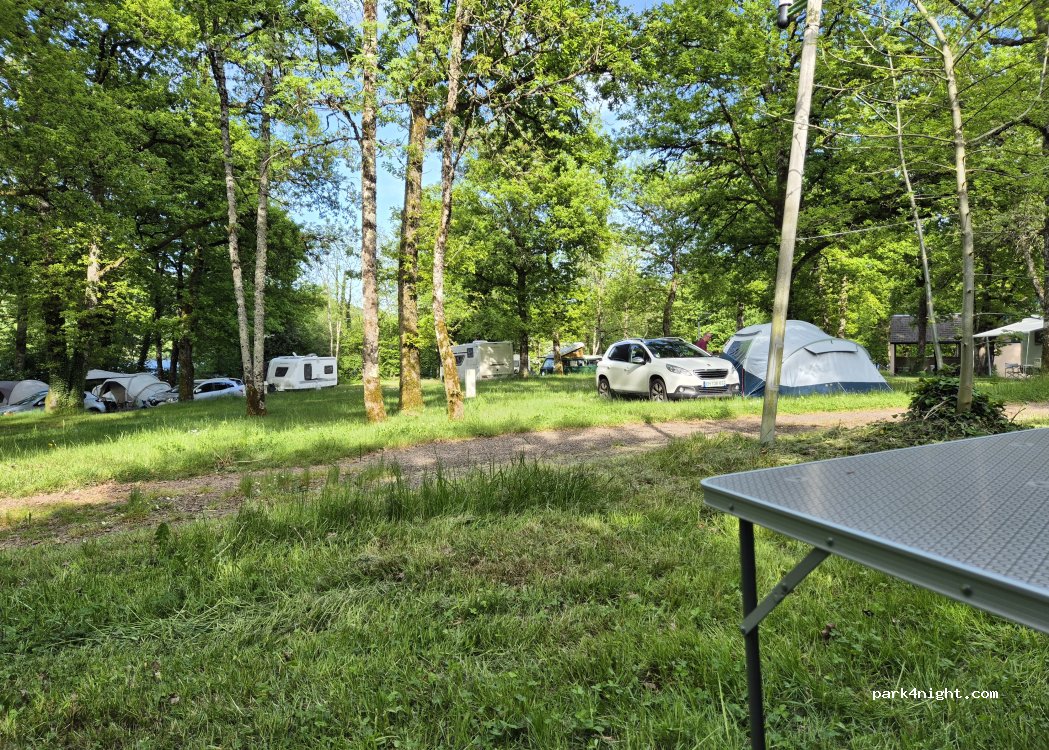 Comme dit l'agent d'accueil du camping :" 1er arrivé, 1er servi". possibilité de s'installer en dehors des horaires d'acceuil. Emplacements arborés, camping au bord du lac (plage et mise à l'eau possible pour de petites embarcations). Sanitaires très simples mais propres. Un vendeur ambulant passe le jeudi soir. Il n'y a pas de commerces à proximité du camping.