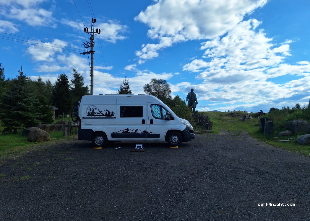 Doubice - The Old Inn Parking by wooden sculptures and military equipment museum, ideal for children. The possibility of spending the night in a pub about 20 m away, where it is also excellently prepared. Also suitable as a starting point for hikes in the Bohemian Switzerland National Park ....
