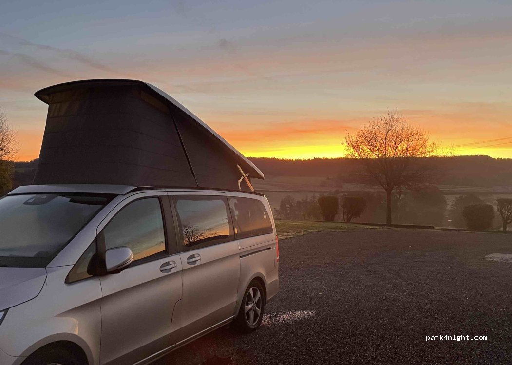 Pour une nuit au calme, à la campagne, c'est l'idéal, réveil par les oiseaux, très beau lever de soleil, vue magnifique. Tout est parfait. Nous avions découvert cet endroit, il y a 2 ans, et y sommes repassés complètement par hasard aujourd'hui avec grand plaisir. Merci à la commune de nous mettre ce parking à disposition, cela nous suffit amplement.
