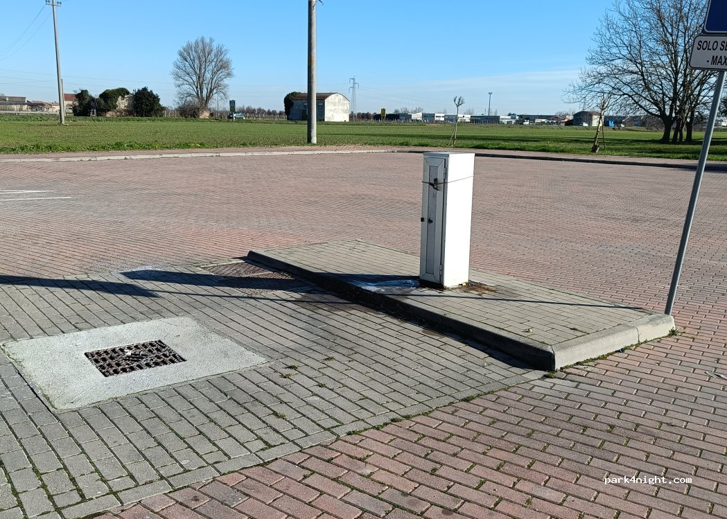 È un bel parcheggio di fronte al Cimitero di Stienta noi ci siamo fermati solo x carico e scarico ...comodissimo...