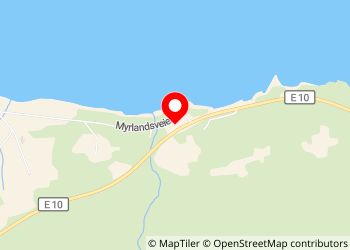 Large parking area just off the E10 with lovely views across the fjord. Stayed twice on our trip to Lofoten. Nice walk along the nearby lane 1.5kms to a beach. Recommended.