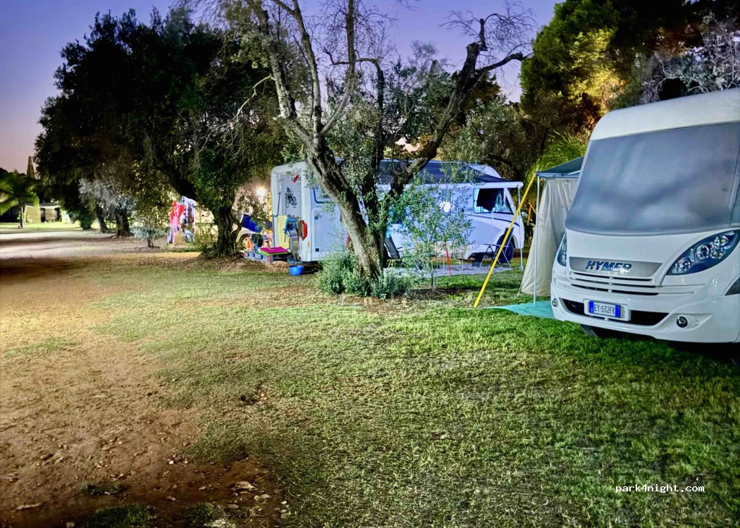 Ottima area di sosta, immerso nella natura tra la timida ombra di ulivi suggestivi, gestione familiare con cordialità e gentilezza. piazzole immense servizi nuovi e all’avanguardia. chiosco attrezzato tutto il giorno pranzi a mezzogiorno e cene alla sera abbiamo appena finito di cenare con due fritture e una catalana eccezionali con prodotti tipici locali. spiaggia raggiungibile a piedi Bellissima
