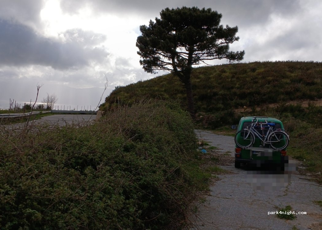 Garé au bord d'une route très calme, pas de voitures qui passent dans la nuit, à côté d'un chemin de randonnée. Superbes vues sur la Sicile. Bon pour 1 nuit. C'est propre et on se sentait très en sécurité. Convient uniquement pour une camionnette plus petite.