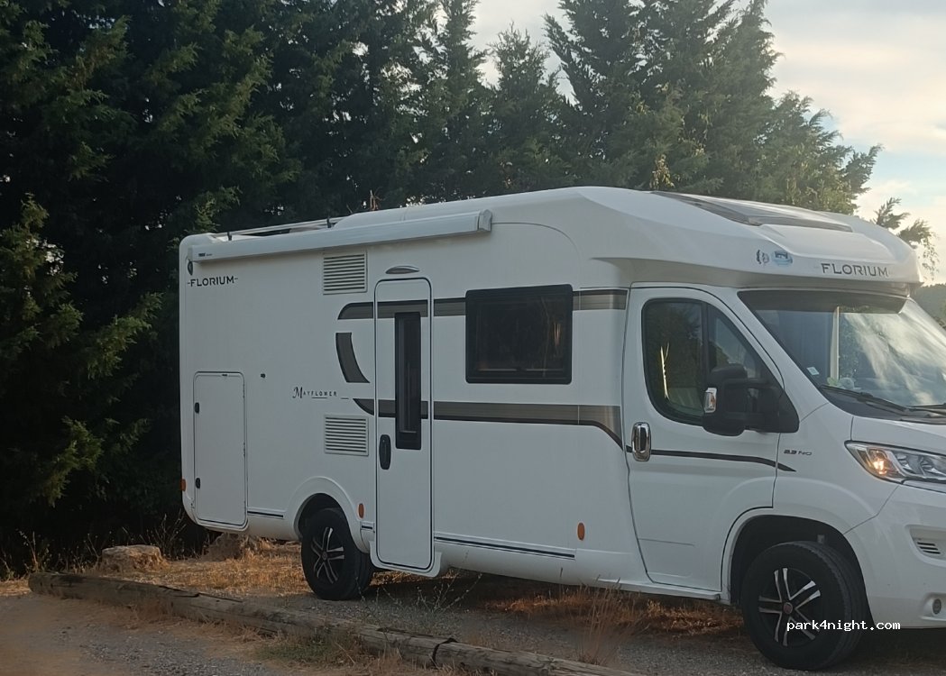 Bravo à la commune pour ce parking dédié. Les services se trouvent 100m plus haut, où l'on manoeuvre facilement. Le tout est gratuit (rare dans le sud). Respectons cet endroit. Supermarché à l'entrée du village. Boulangerie au centre du village. Prévenir la police par sms en arrivant.