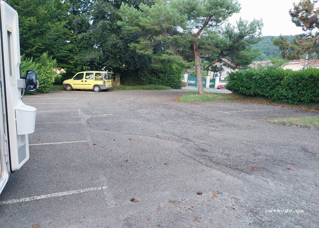 Parking gratuit calme , partiellement à l’ombre. La prise d’eau se fait dans le cimetière gratuitement, prévoir 10 m de tuyau.