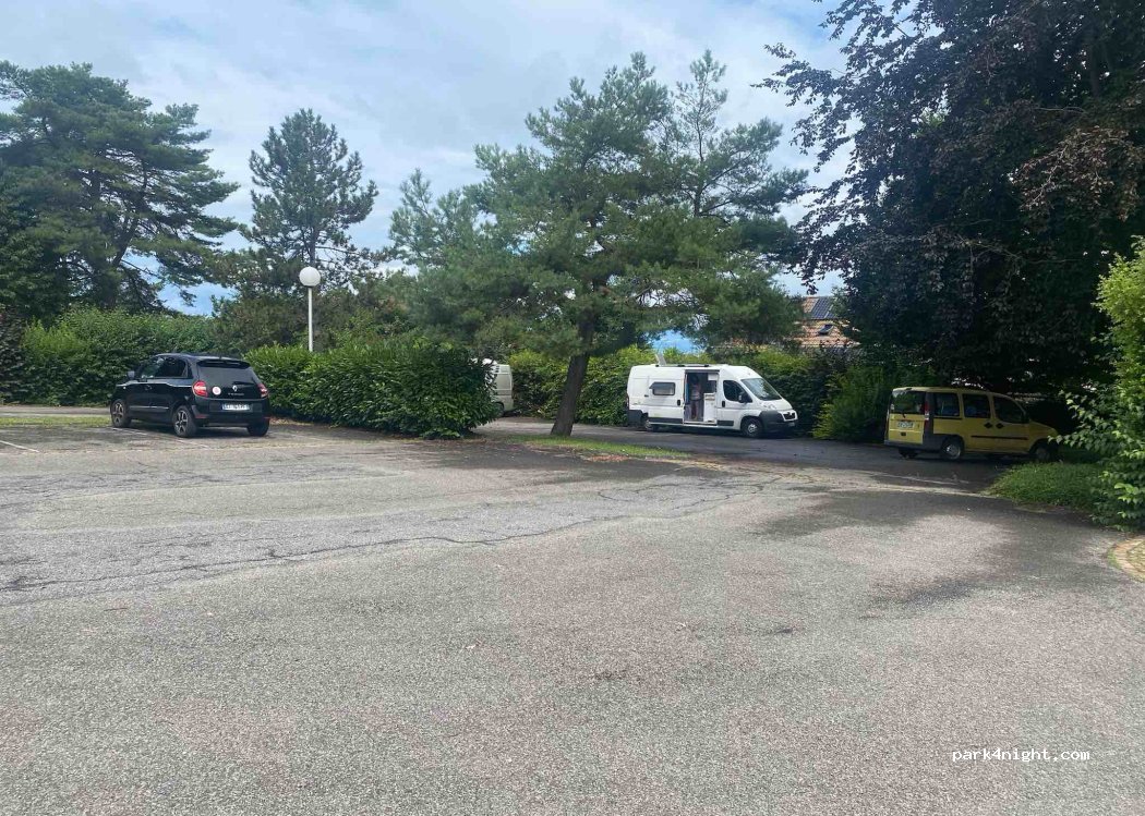 Endroit calme près du stade , parc arboré avec tables pique-nique. Point positif : point d’eau. Point négatif: pas d’eau dans les toilettes non accueillantes. Nous y avons passé la nuit en van sans soucis.