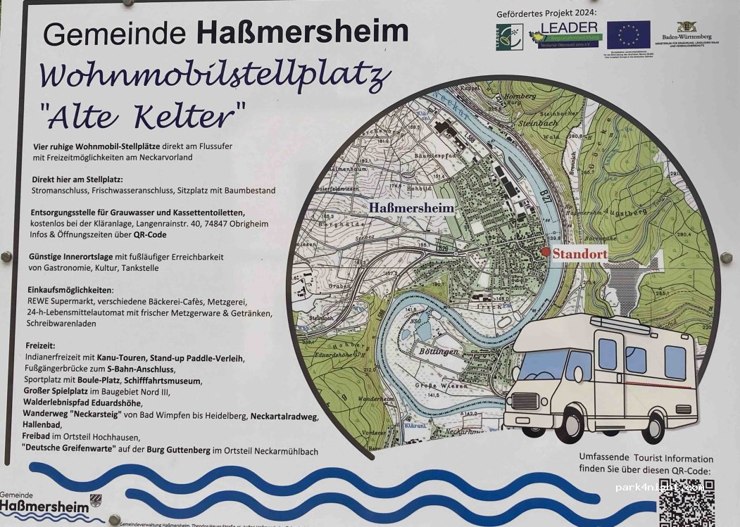 Netter Stellplatz am Neckarradweg. Einkaufsmöglichkeit am anderen Ortsrand. Gasthäuser, auch mit Terrasse mit Neckarblick. Guter Ausgangspunkt zum Besuch der Burgen Guttenberg und Hornberg (Burg des Ritters Götz von Berlichingen). Mit dem Fahrrad sind auch die Fachwerkstädte Mosbach und Bad Wimpfen gut zu erreichen. Neu gestaltet; mit Entsorgung wäre er mir 5 Sterne wert gewesen. Danke Gemeinde
