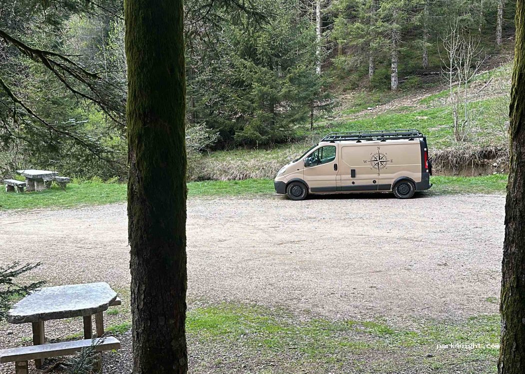 Heerlijk rustige plek, ik heb hier één nacht gestaan wat makkelijk te doen is. Aan de rand van een prachtig bos waar je waanzinnig kan wandelen. Tevens is er een klein kapelletje om een kaarsje te branden. Zeker een aanraden!