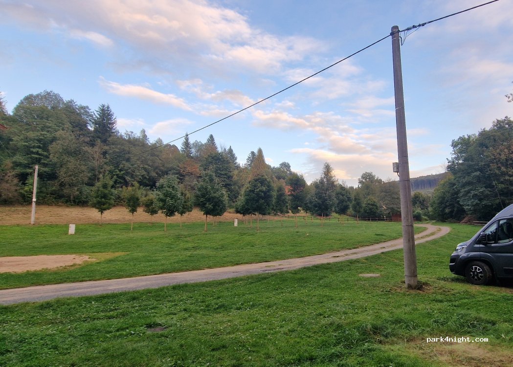 Very quiet place, good facilities. Perfect night sky view! But never ever use Google maps for navigation here! 240 CZK for caravan, car, 2 people, 1 dog and electricity per day.