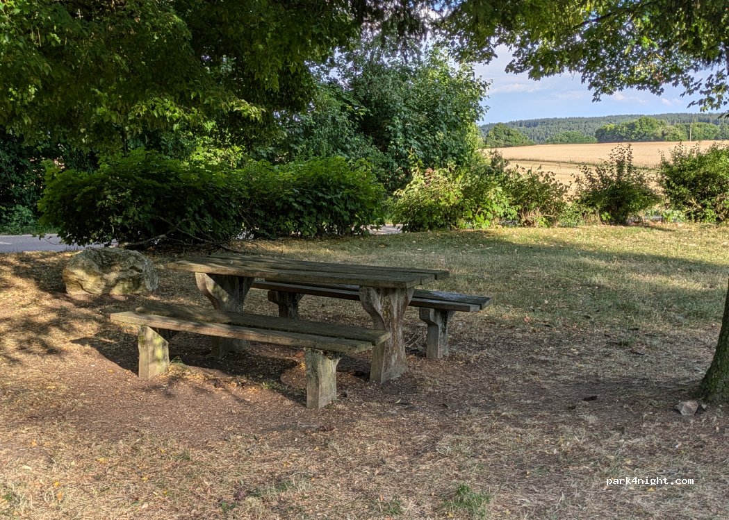 Der Platz war eigentlich schön. Charakter eher eines typischen Rastplatzes nicht nur alles Natur. Der Grillplatz war nicht nutzbar weil abgesperrt. Auf der Landstraße fahren die Autos bis spät abends rasend schnell vorbei, mit Kindern also nicht ganz so angenehm.