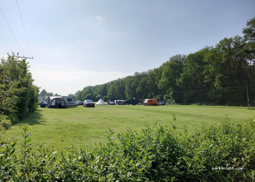 Einfache Wiese, an zwei Seiten durch Wald begrenzt und an der dritten durch Feld sehr offen. Leckeres dazugehöriges Restaurant. Eine Nacht mit 2 Personen und Hund für 20€. Funkmast für mobiles Internet direkt nebenan.