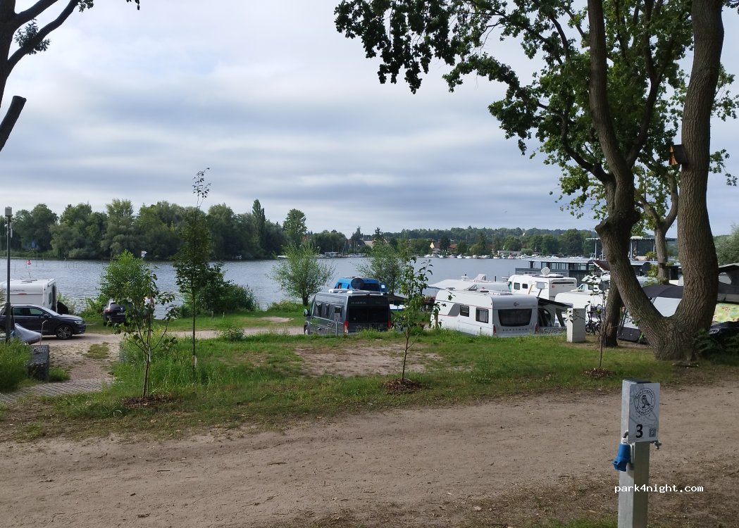 Wir haben hier eine Nacht in unserem Bulli in einem Wäldchen verbracht. Die 5 Sterne Bewertungen kann ich absolut nicht nachvollziehen und teilweise wurde hier auch doppelt bewertet. In Coronazeiten wird man hier dicht an dicht gestellt, sodass man die Heckklappe fast nicht mehr auf bekommt. Die Sanitäranlagen sind teilweise defekt ( Spülung kommt nur ein Rinnsal) und einfach ungepflegt. Keine Toiletten Abfalleimer für die Damen. Die Außenspülküche riecht äußerst unangenehm. Direkt am Platz fährt die Bahn vorbei. Das einzigst Positive ist die schöne Lage am See und die Nähe zu Potsdam.