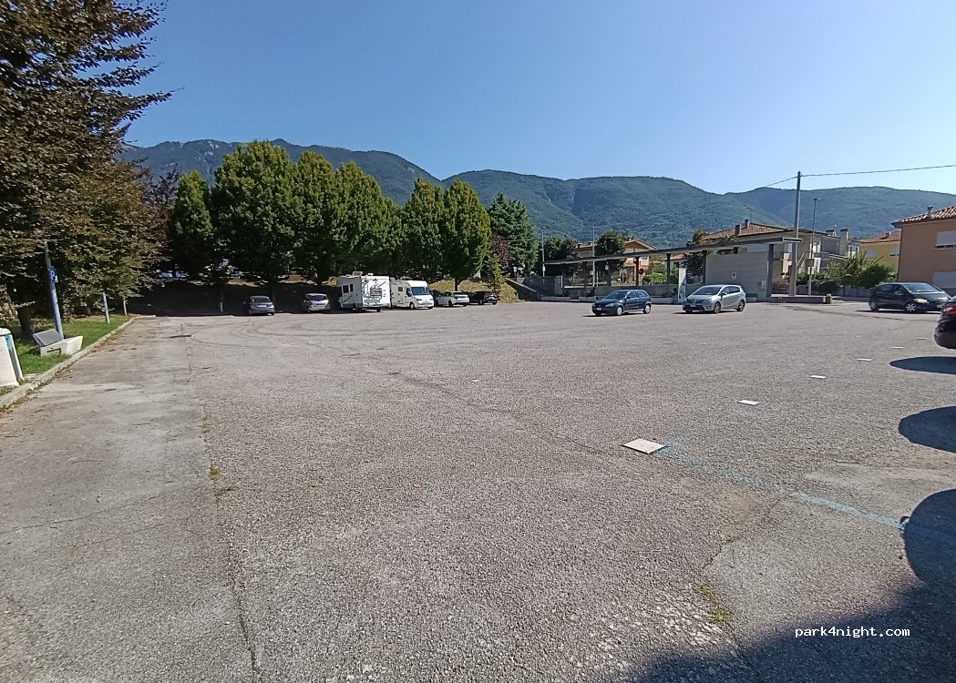 Parcheggio gratuito nei giorni feriali, a pagamento dalle 8.00 alle 20.00 dei giorni festivi. Posti molto larghi, in grado di contenere per intero un camper di 7 metri. Soleggiato, posizione molto comoda per visitare le grotte del caglieron. In centro paese con tutti i negozi e bar vicini. Ottima la gelateria adiacente.
