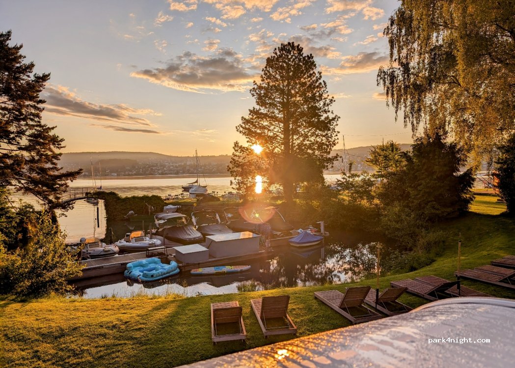 Les pieds dans le lac ! Très joli endroit, proche de la ville, bon restaurant. Par contre payant (1 adulte et 3 enfants, CHF 50.- pour 1 nuit)