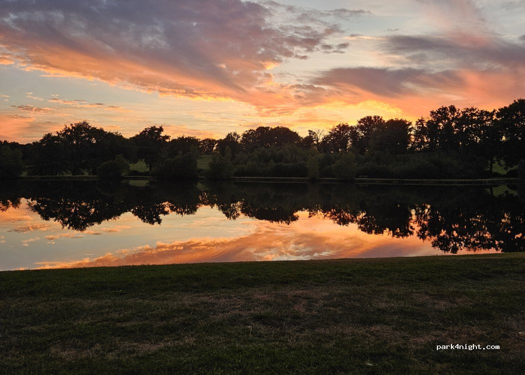 Lieux super sympa, les pêcheurs nous ont laissé dormir en allant de l'autre côté de l'étang! Il y a des poubelles!le terrain est un peu penché mais ca va encore!