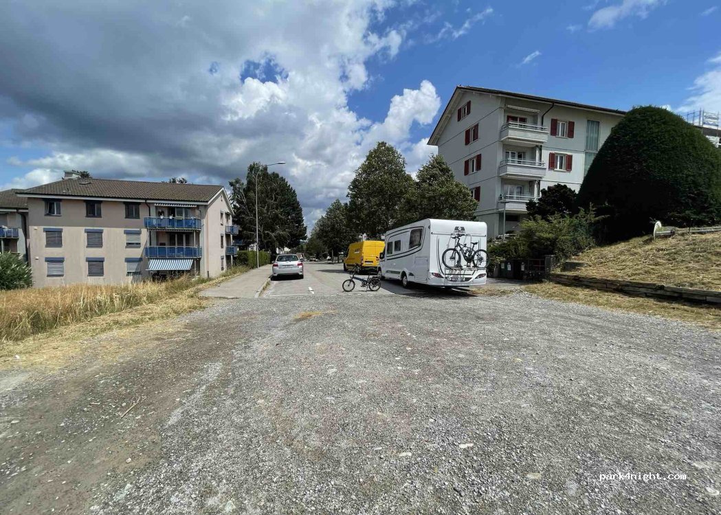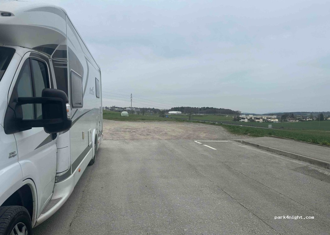 Parking plat en gravier pour une nuit tranquille près de la ville. Je ne sais pas si vous pouvez passer la nuit. Aucune indication sinon.