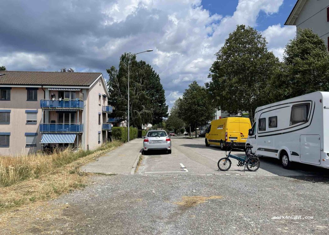 El sitio está bien para dormir, pero a las 8:00 de la mañana en punto multa de trío está claro que en Suiza no nos quiere con Autocaravana. No hay nada para aparcar ni siquiera pagando