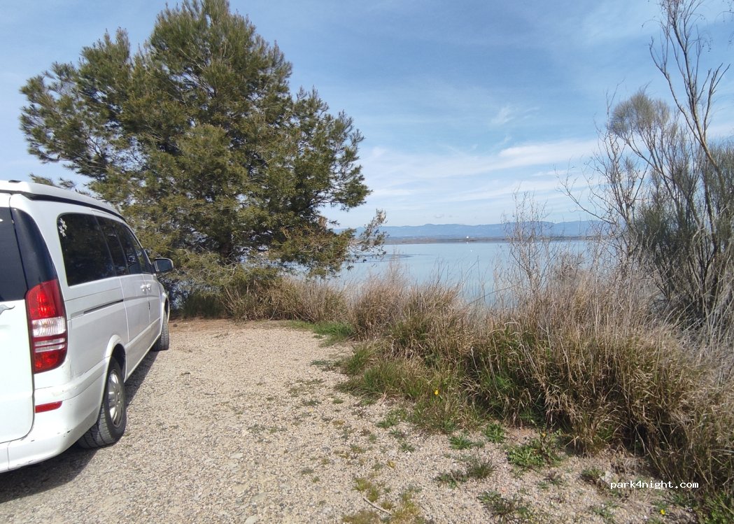 parking de grava adecuado para pasar el día y darte un buen baño en el pantano, para dormir sitio tranquilo. sin ningún servicio. Restaurante bastante aconsejable, es económico y tiene muy buenas y abundantes raciones.