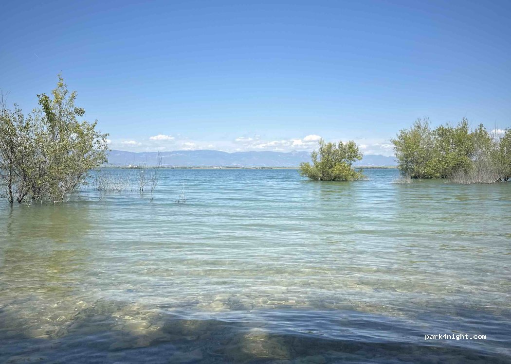Un très belle emplacement à plat . Vue sur le lac qui change de couleur en fonction de l'ensoleillement. En cette saison c'est très calme. Facile d'accès pour tous types de véhicules. Quelques pêcheurs le matin mais ils restent discrets. Poubelles sur le spot.