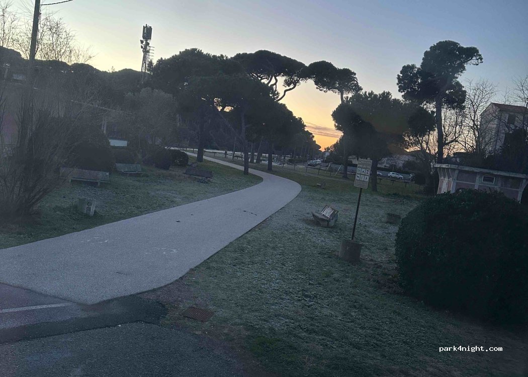 Dobre miejsce do postoju, znajdujące się przy osiedlu dla mieszkańców. Darmowe i spokojne, spędziliśmy tam parę godzin bez żadnych problemów. Zaparkowaliśmy na białych miejscach (darmowych we Włoszech).