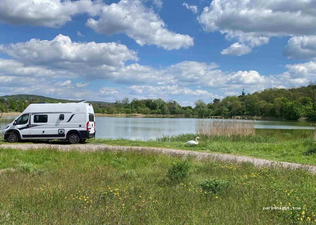 Schöner Platz am See, kleine Parkanlage zum spazieren, Parkbuchten werden von Spaziergängern genutzt. Wir waren mit Dachzelt eine Nacht da, man hört je nach Wind die Straße etwas und ganz leicht Flugverkehr. Hat uns nicht gestört.