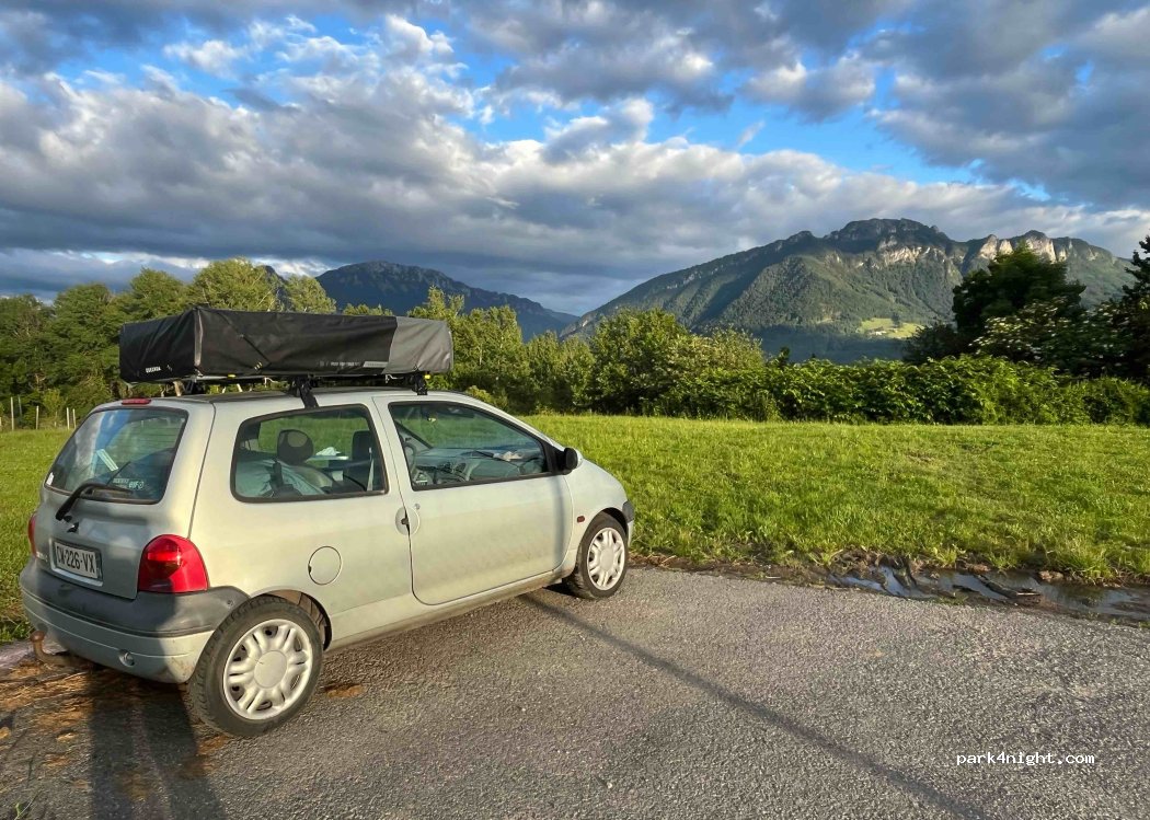 Il est extrêmement difficile de trouver une place dans les alentours de Thonon, ce spot apparaît comme un excellent choix pour une nuit dans ce secteur. Selon l'heure d'arrivée (soirée) il y aura match, mais en rien dérangeant. L'endroit est calme avec du réseau 4g. Merci pour le partage.