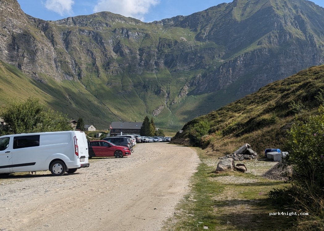 Emplacement très bien mais reculé au bout d'une route étroite. La route dispose de plusieurs endroits pour croiser, nous avions un Ford transit et ça s'est très bien déroulé ! il y a un restaurant à proximité pour manger ou boire un verre. Aucun panneau n'interdit de rester là nuit, il faut payer le parking la journée.
