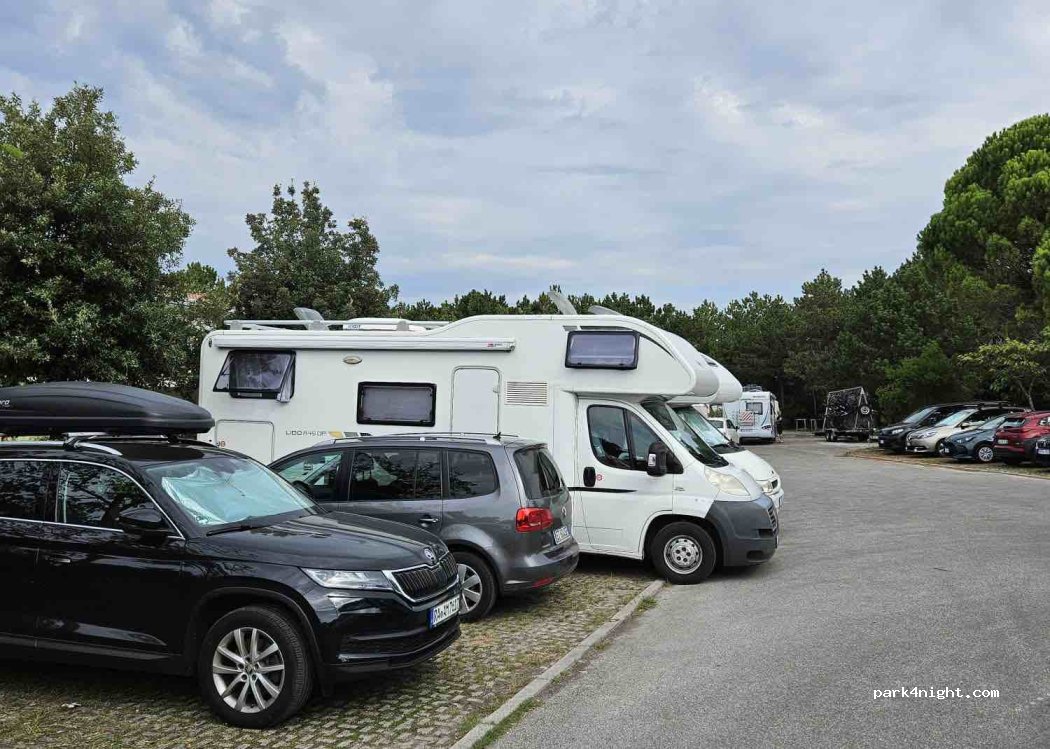 Quiet location without service. We stayed three nights in total (2020&2021) without problems at this parking lot. Beach approx. 10 mins walk and Bibione centre 15 mins walk away. Please use free toilets next to the beach or in the restaurants nearby!