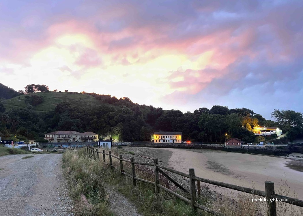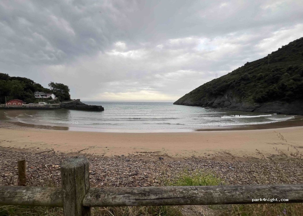 Sitio espectacular para pasar el día y la noche, muy tranquilo. Hay duchas y un grifo. Se puede entrar por el pueblo de Mioño no hace falta bajar la cuesta estrecha. Está en la misma playa de la zona. Aparcamiento pequeño, tienes que pasar el puente y detrás del bar de la playa se ubica el aparcamiento. Tranquilo para pasar la noche.