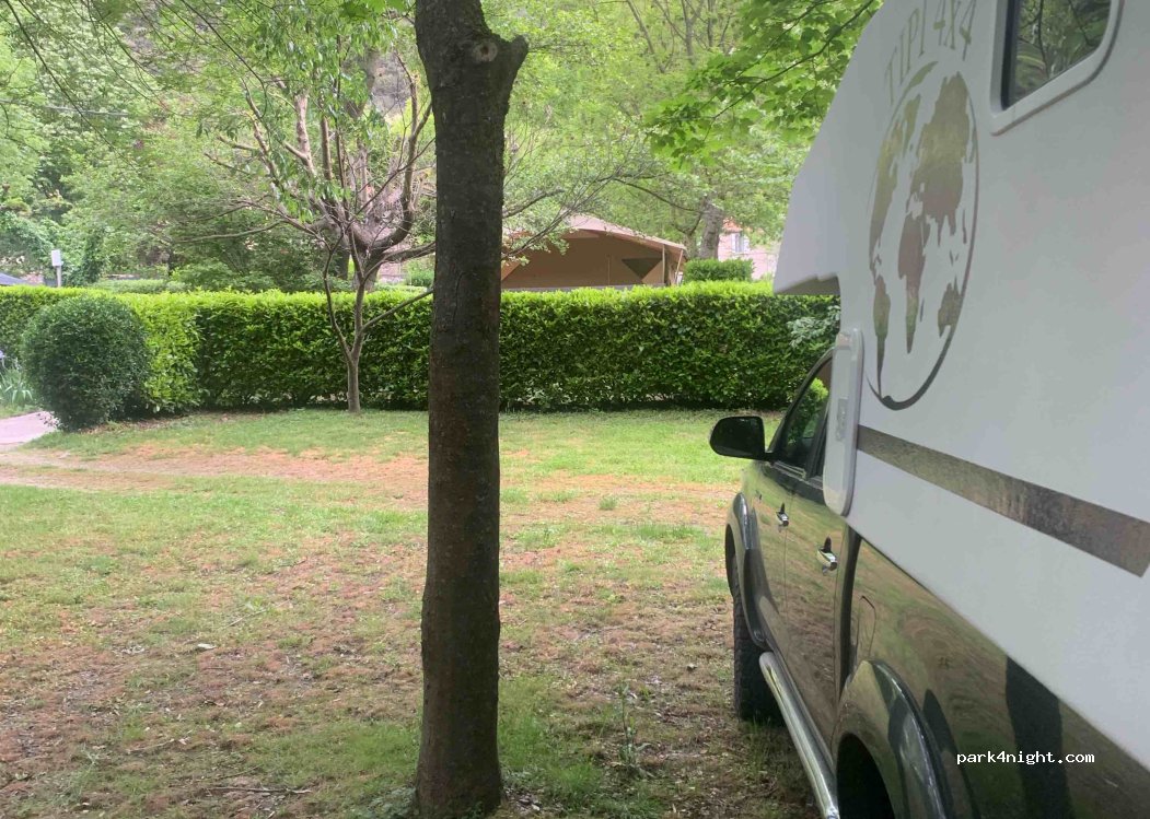 Schöner kleiner Platz mit Pool. Plätze auf Rasen sehr eben und schattig angelegt. Zufahrt zum Platz und Platz selbst relativ eng, war mit 7,5m Womo da, aber größere Fahrzeuge könnten Probleme bekommen. Sanitäranlagen sauber, Waschmaschine vorhanden. Kleines Restaurant am Platz, sehr günstig, leckere Pizza, auch zum mitnehmen. Leider keine Entsorgung möglich, nur daher 4 statt 5 Sterne.