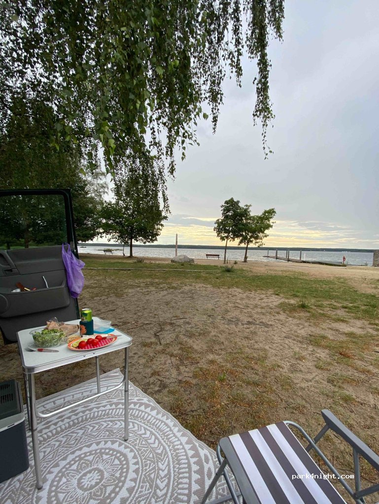 Wer die Ruhe sucht ist hier gut aufgehoben. Der Platz könnte etwas Pflege vertragen aber er punktet mit einem schönen See und freier Platzwahl. Der Untergrund ist sandiger Waldboden. Das Angebot des Kiosk ist eher überschaubar. Die Radwege sind sehr gut. 1Womo, 2P/Tag 30€. Vielleicht etwas viel da Duschmarken und Strom bei Bedarf dazu kommen. V/E und Spielplatz vorhanden.