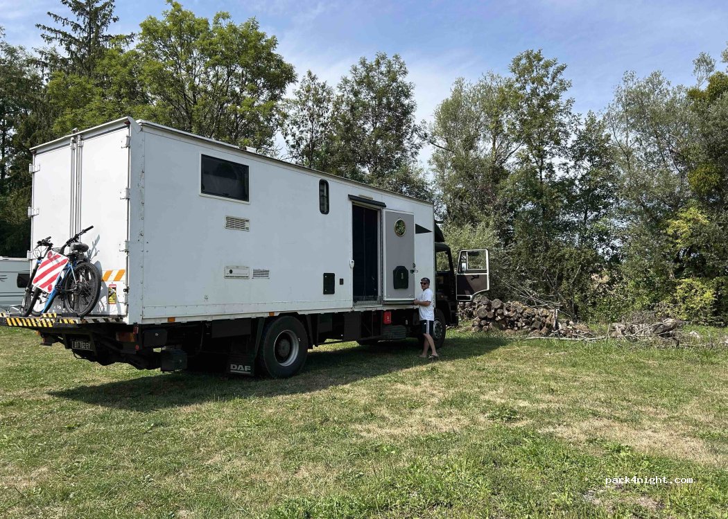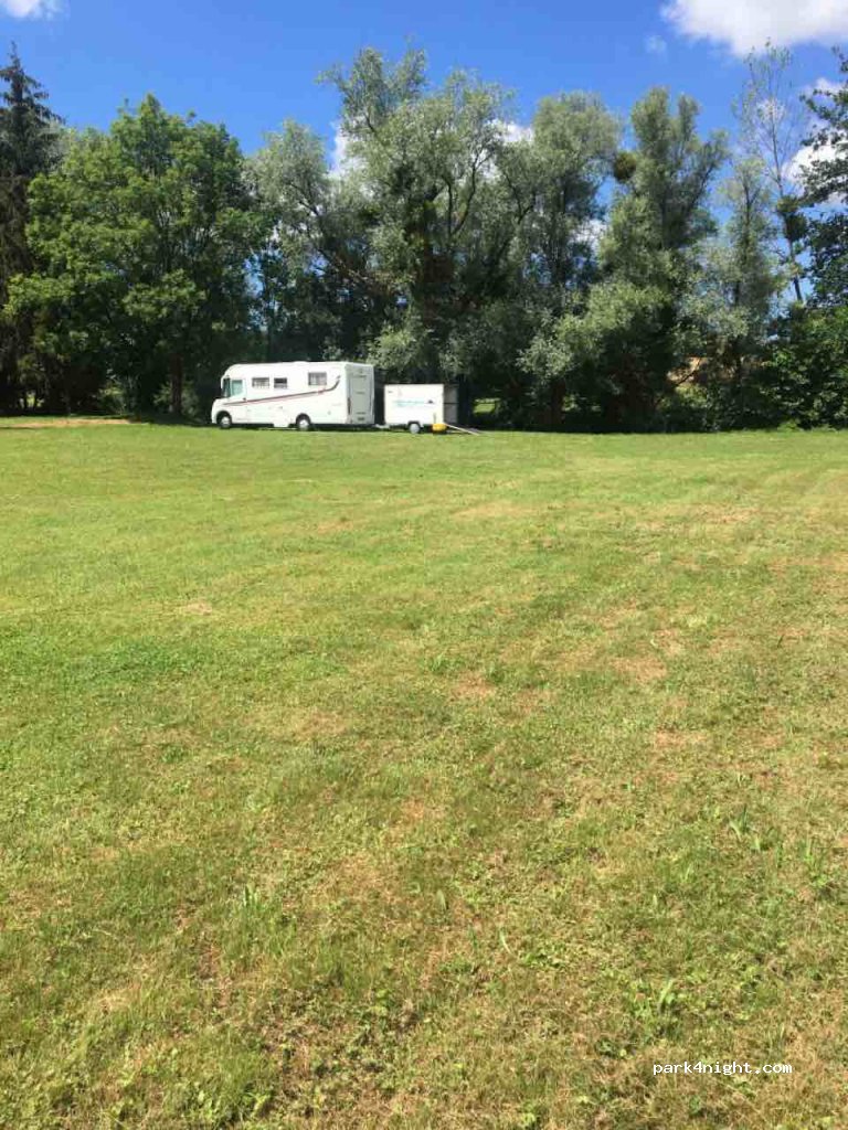 Ruim grasveld met bos perceel aan doorgaande - redelijk rustige - straat. Gras wordt zo te zien gauw nat bij regen, maar er is ook een verhard deel. Zon en schaduw, min of meer horizontaal. Alle voorzieningen aanwezig, maar een chemisch toilet kun je niet legen. Er is wel een (droog)toilet. De douche werkt op solar, dus in het voor- en naseizoen is die koud. Wij mochten bij de eigenaresse douchen, super vriendelijk! Pas op voor hondenpoep op het grasveld (bij ons direct voor de deur?). Wij waren hier via een abonnement van VanSite, dus hoefden niet te betalen.