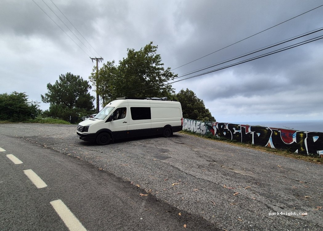 Spot en bord de route avec magnifique vue sur les côtes. Parfait pour marquer une pause par exemple. Cependant, le terrain est en pente. Pas idéal pour la nuit