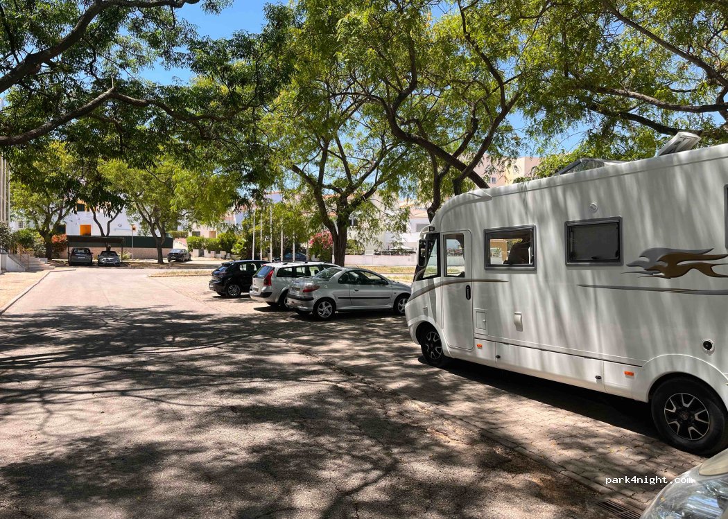 Estacionamiento amplio donde está permitido pernoctar. Súper tranquilo! Cero ruido! Súper bien ubicado tanto para ir a la Marina de Vilamoura como a la playa. Hay sombra. Sin servicios.