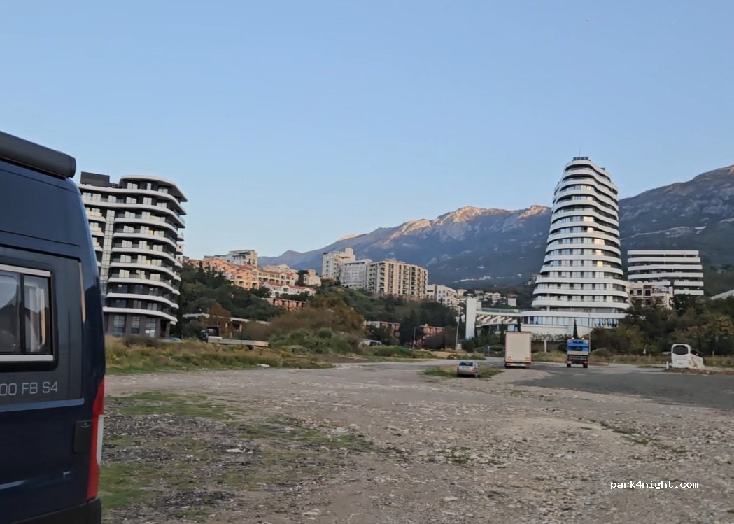 Just a big car park with lots of litter. Fine for a night just to be close to budva - takes about an hour to get to the old town by foot. We were charged €15 for 24hr. No services but there are showers on the beach.