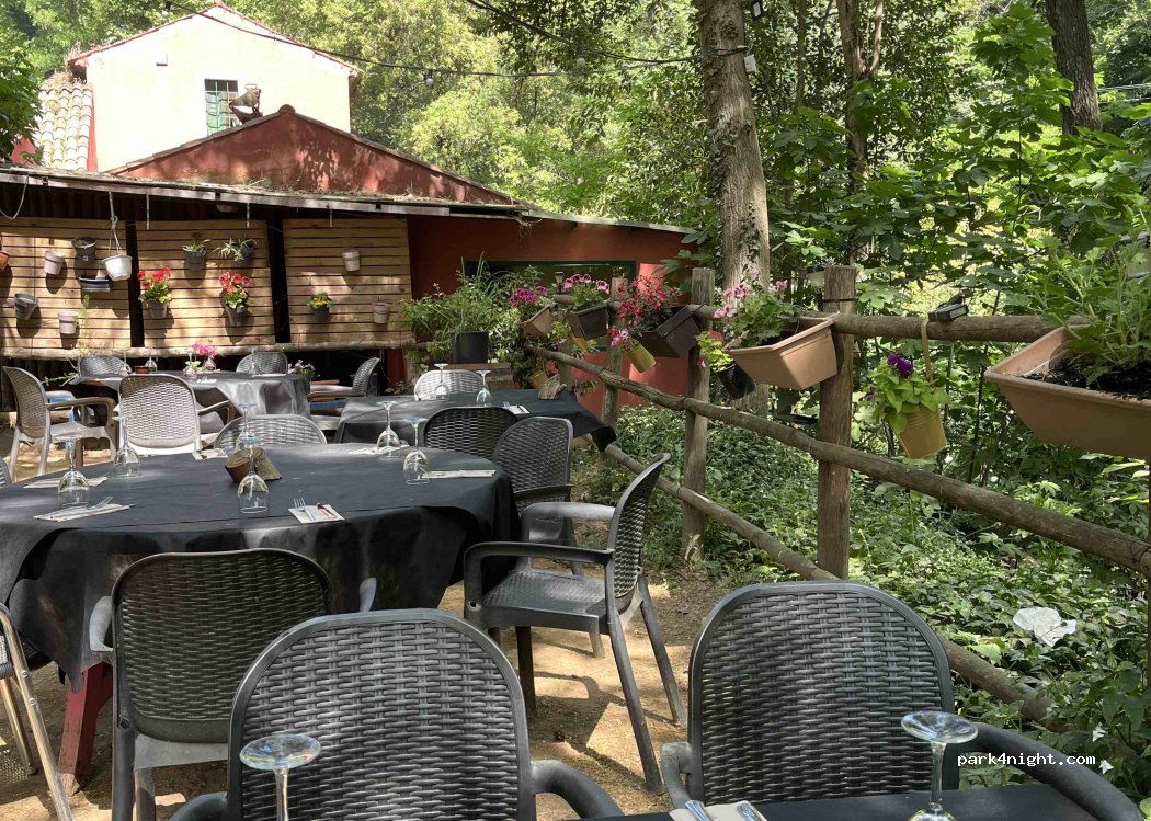 Excel.lent pàrquing particular als peus del Montseny,el propietari permet pernoctar, per cert, molt bona gent. Hem parlat amb ell i ens ha deixat el wc obert durant la nit perquè en poguem fer ús. El restaurant és un antic molí on es feien pipes, actualment s'hi menja de "lujo". El riu està a tocar i hi ha unes gorgues on et pots refrescar. Aprop hi ha rutes fer a peu i amb btt. Segur q hi tornem