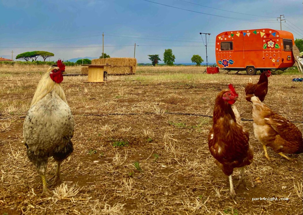 Posti camper raddoppiati su erba, in piano, al sole; acqua e corrente compresi; consiglio telefonare. Il giro nella fattoria è poi una esperienza da fare... sia per grandi sia per piccini. Area pic nic con barbecue e area giochi a disposizione. In aperta campagna ma accanto alla casa dei proprietari, disponibili per qualsiasi necessità. Vicino ad un supermercato e a 20 min a piedi dal mare.
