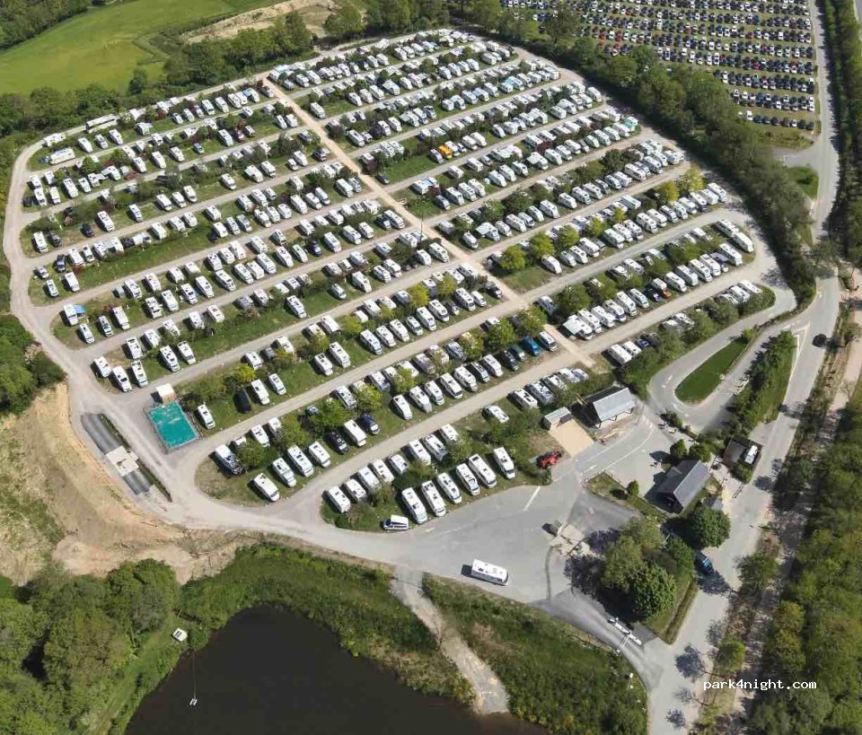 Huge parking for hundreds of campers. Find a spot quite a few rows back if you want peace and quiet, don't pull into the first spot you see.