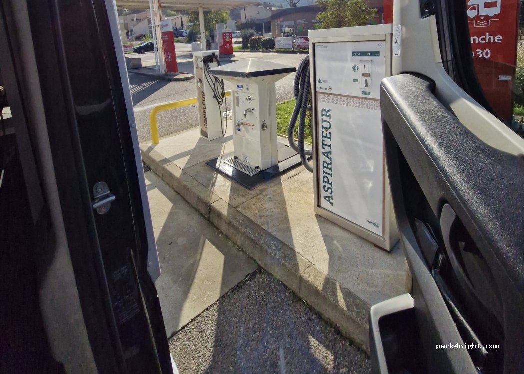 Borne très propre et gratuite pour vidange. Vous pouvez faire le plein de carburant au prix bas. Ainsi que faire vos courses avec un personnel très accueillant. Vous trouverez des produits régionaux et pourrez faire le plein de vin de la région et du nougat de Montélimar et des produits de Provence vous pouvez dormir la nuit en toute tranquillité, secteur très calme.
