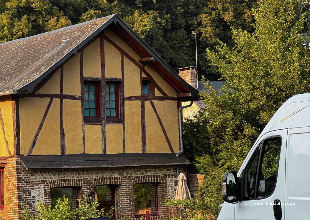 Een rustige nacht, water en elektriciteit aansluiting aanwezig. Slechts 1 plaats voor een camper of mobilhome. Nabij een medische dienst, dit was waarschijnlijk het vriendelijke postkantoor. Mooie ligging en het dorpje staat in het teken van Flaubert en Madame Bovary.