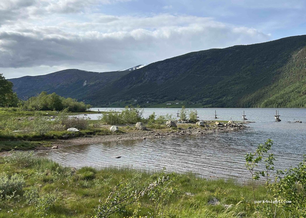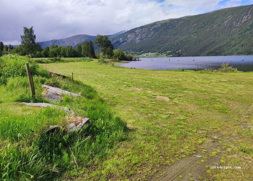 Der Platz ist schön gelegen mit Badestelle. Preis jetzt 300NOK, jede Dienstleistung muss noch dazugebucht werden (Strom, Dusche, Abwäsche). Für kleine Fahrzeuge wird das ziemlich teuer. Obwohl in der Nähe der Straße nachts sehr ruhig.