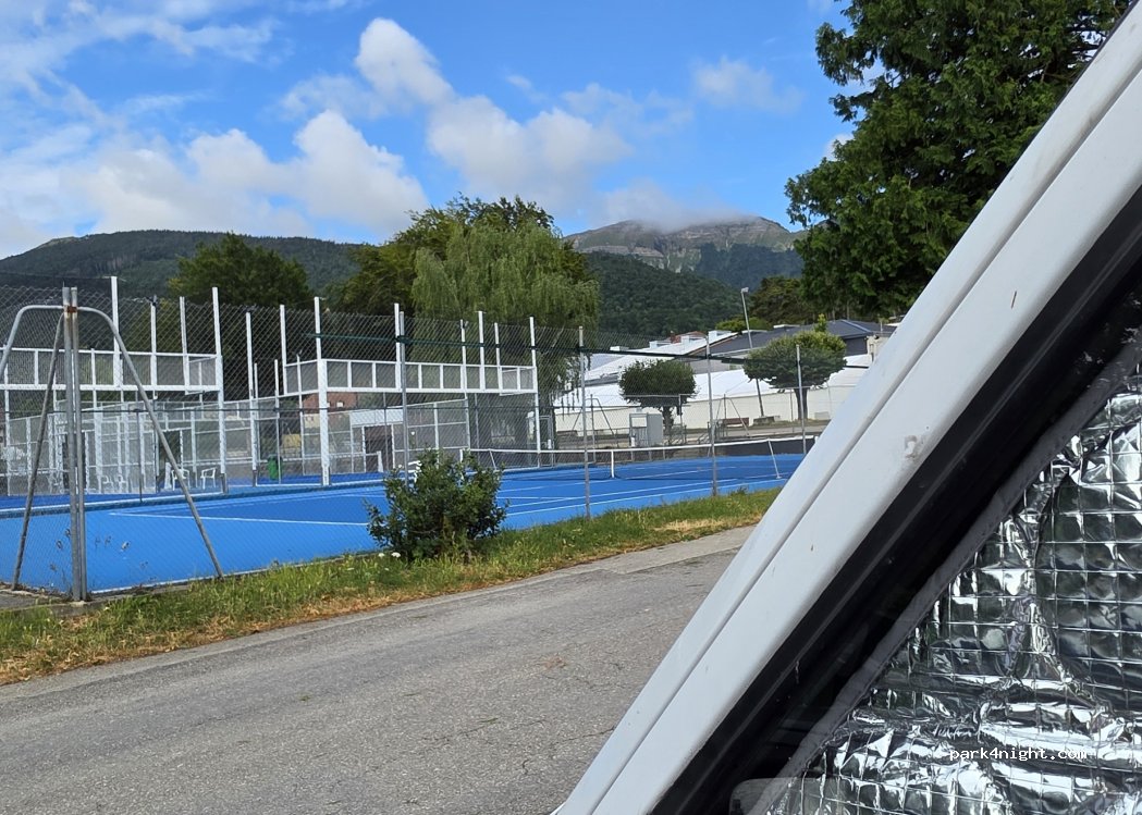 Parking public ombragé relativement calme à côté boulodrome, terrain tennis et voisins peut discutants que l'on appelle un cimetière, malgré tout lieux agréables et accueillant...