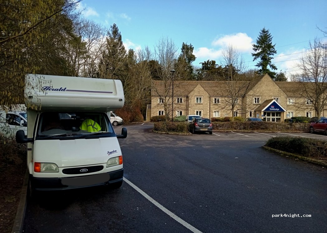 Very good for a free car park. 50 meters from the Travelodge and Gregg's breakfast /toilets . noise from the main road and it's a busy car park. Travelodge is only £34: if your a light sleeper .handy for Cirencester .too far to walk to Cirencester but you can park outside the barn theatre