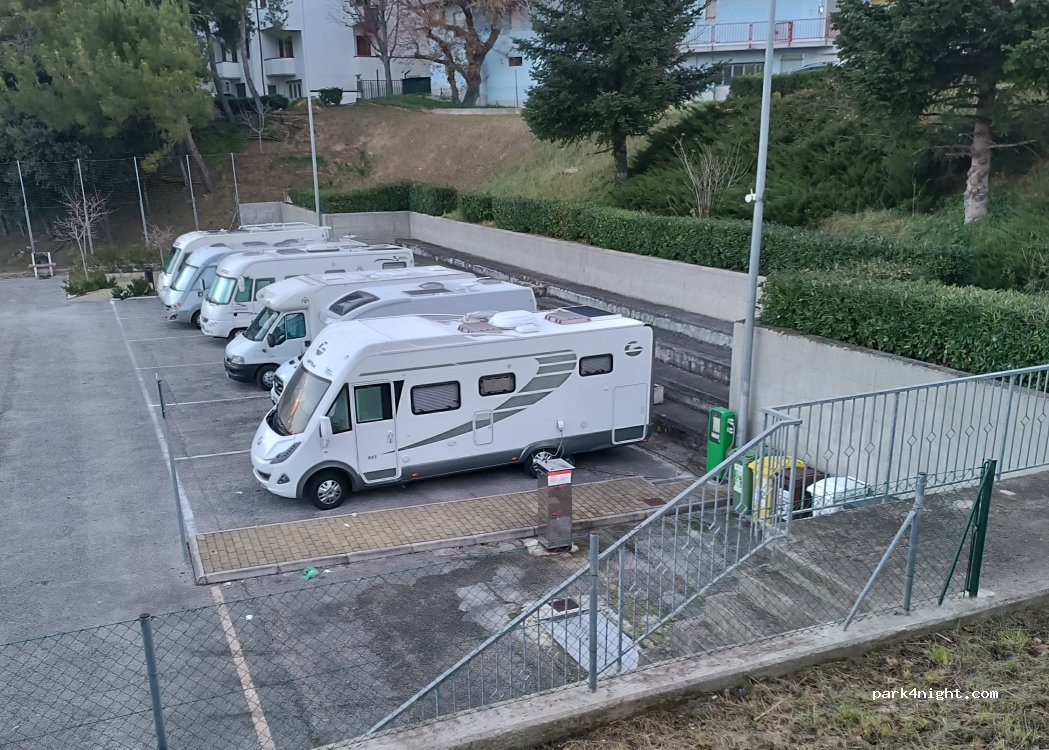 New area in castelfidardo equipped with loading and unloading and free electricity, for a fee from 01/01/2021, flat, on asphalt, with areas that are in the shade at certain times of the day 9 very comfortable and small places picnic area. About 800 meters (uphill) from the Castelfidardo Monument Park and about 1 km from the historic center where the Accordion Museum is located (Closed until the end of August for renovation). A few steps from the area there is a supermarket, a pharmacy, bar, pizzeria and tobacconist. Pay attention to the entrance to a busy and sloping road. The area could also be an excellent alternative to campsites and coastal areas as it is located a few kilometers from the splendid Conero Riviera.